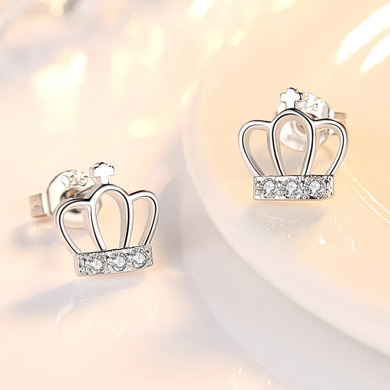 Fashion Crystal Zircon Crown Stud Earrings
